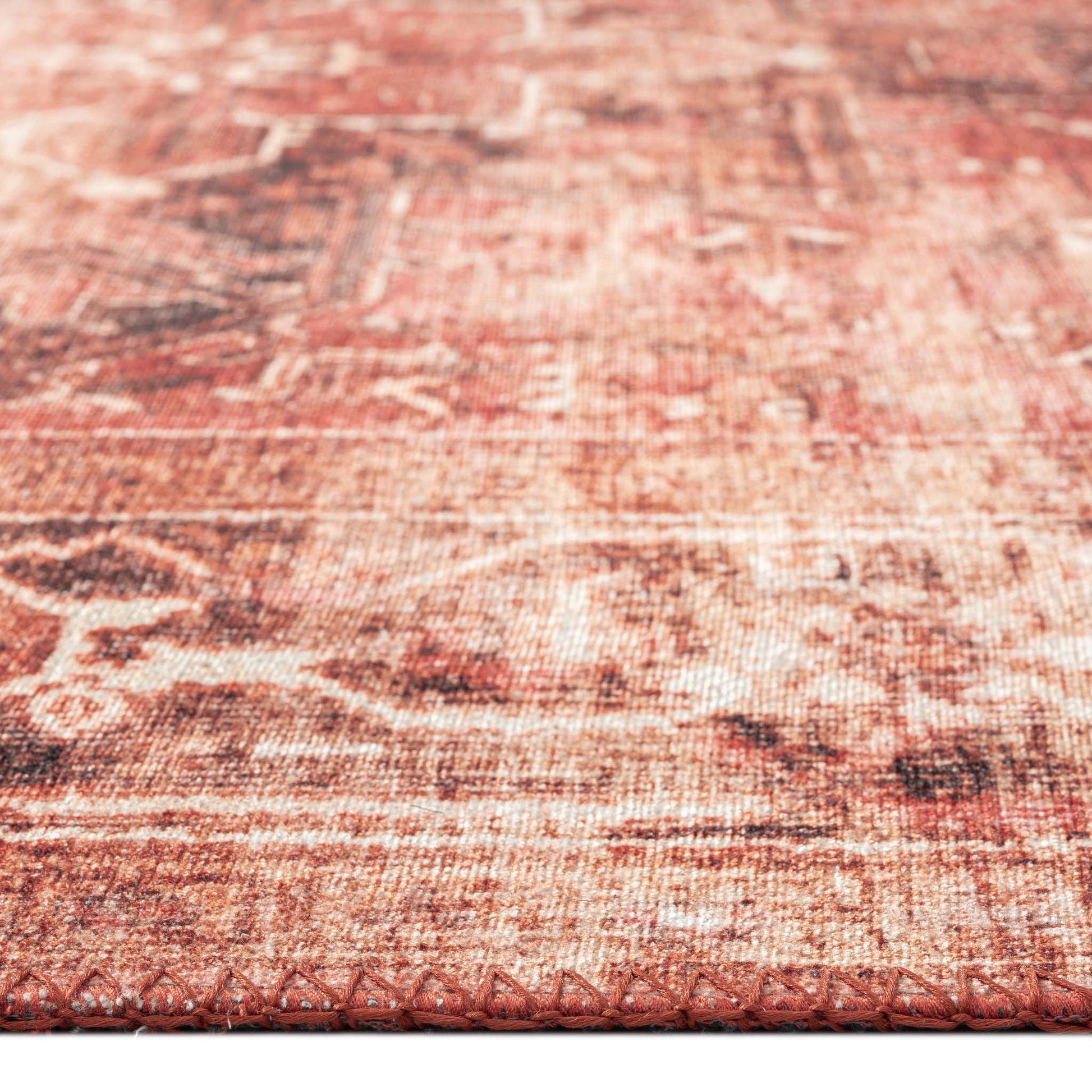 This exquisite collection recreates the spirit of well-worn antique textiles of the classic orient with its distressed traditional patterns and unusual designs, and suits contemporary interiors surprisingly well. These raw but stylish patterns are printed on durable machine-woven polyester chenille with a recycled cotton back, and finished with intricate blanket-stitching. These highly fashionable rugs are made in Turkey, utilizing the latest advances of modern technology. *Please allow up to -5% size variance due to possible post-production shrinkage of the recycled materials used in these rugs.